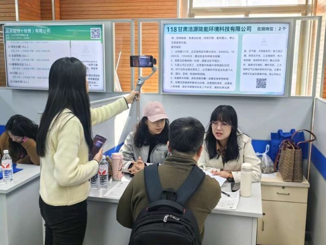 2026年“春风步履”暨甘肃共青团第九届“芳华聘请会”现场。现场签约30余人。正在线预定职位、送达简历、洽商面试等。甘肃人才网线月底,中青报·中青网记者 王豪/摄